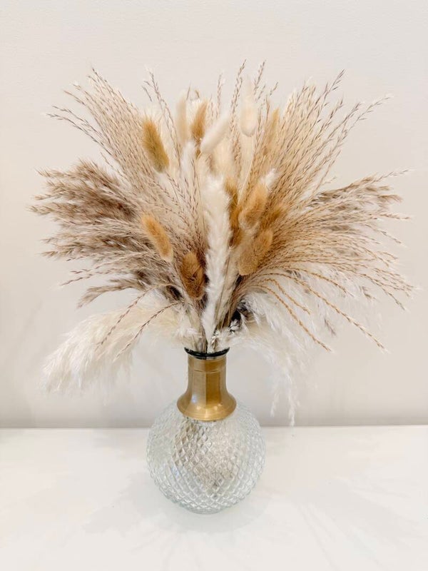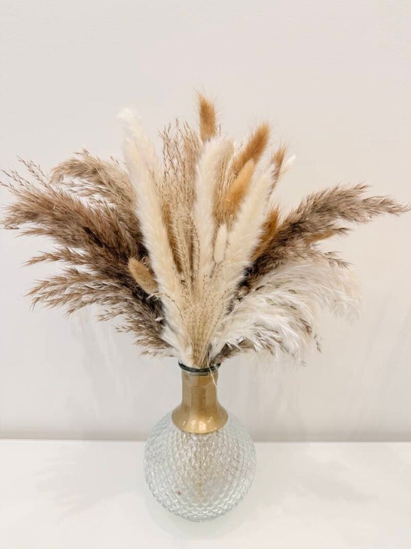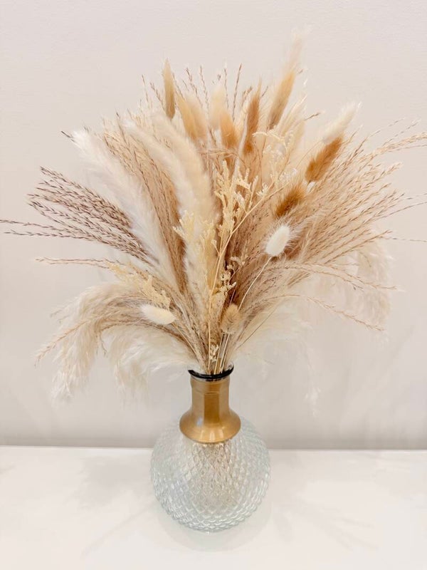 De pampas is een natuurproduct. De pluimen kunnen in lengte en kleur iets variëren.