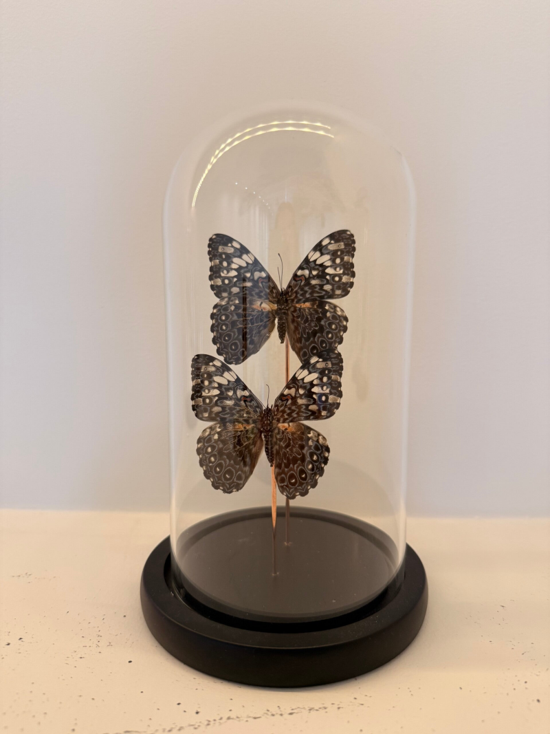2 Hamadryas guatemalena vlinders in glazen stolp