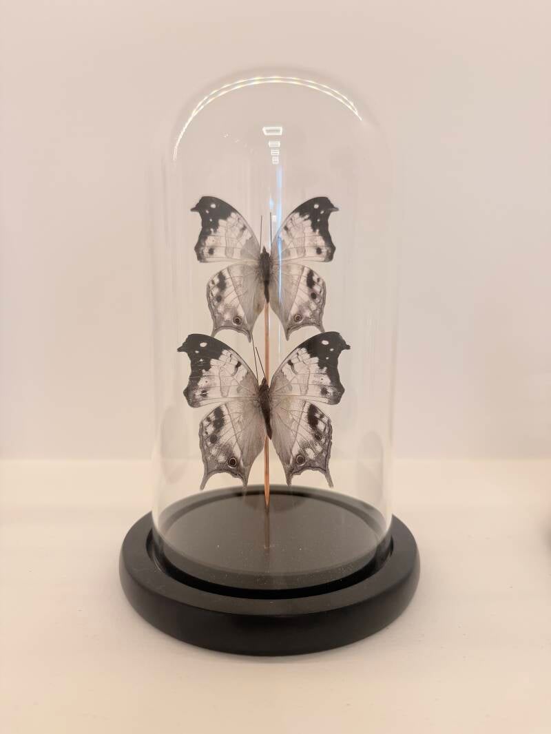 - Design: Luxe glazen stolp met twee exotische vlinders