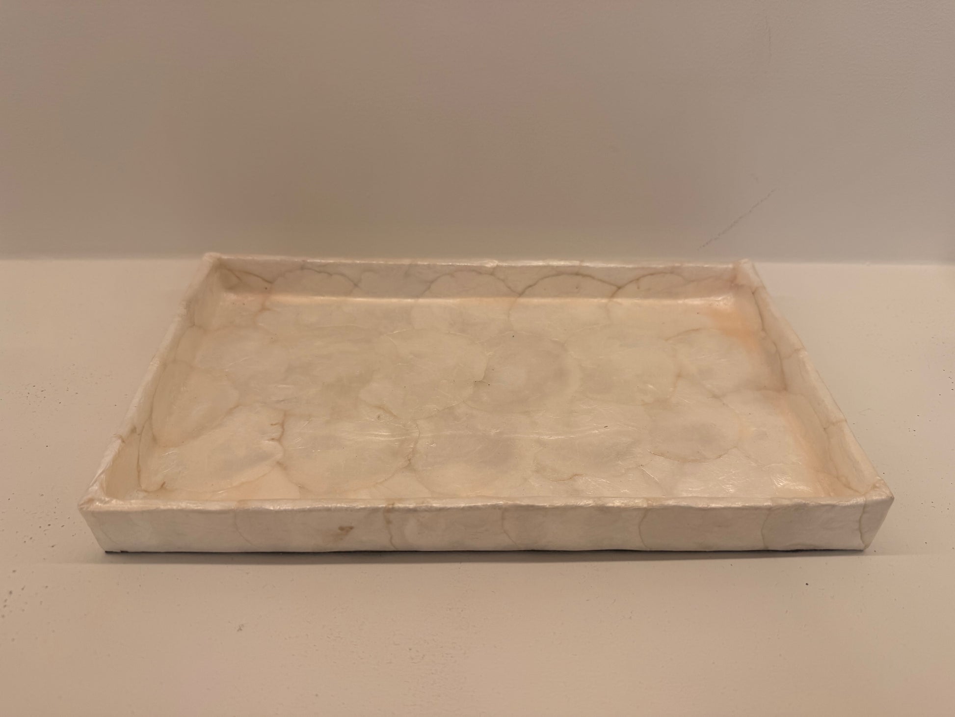 Voeg een vleugje natuurlijke elegantie toe aan je interieur met dit prachtige Capis dienblad. Gemaakt van echte Capiz-schelpen, straalt dit dienblad luxe en verfijning uit. Het glanzende oppervlak en de subtiele kleurnuances maken het een perfecte eyecatcher voor elke ruimte.