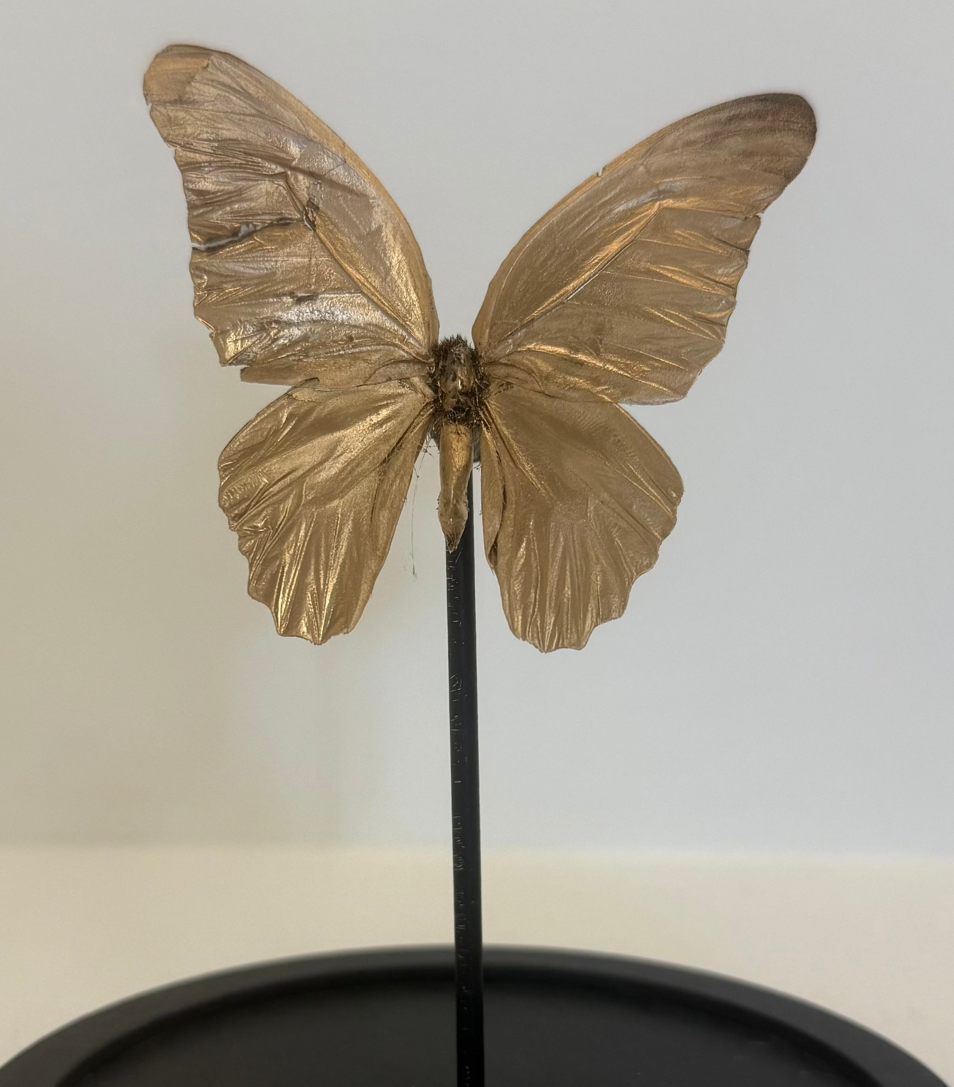 Een echte vlinder in de kleur goud gespoten.