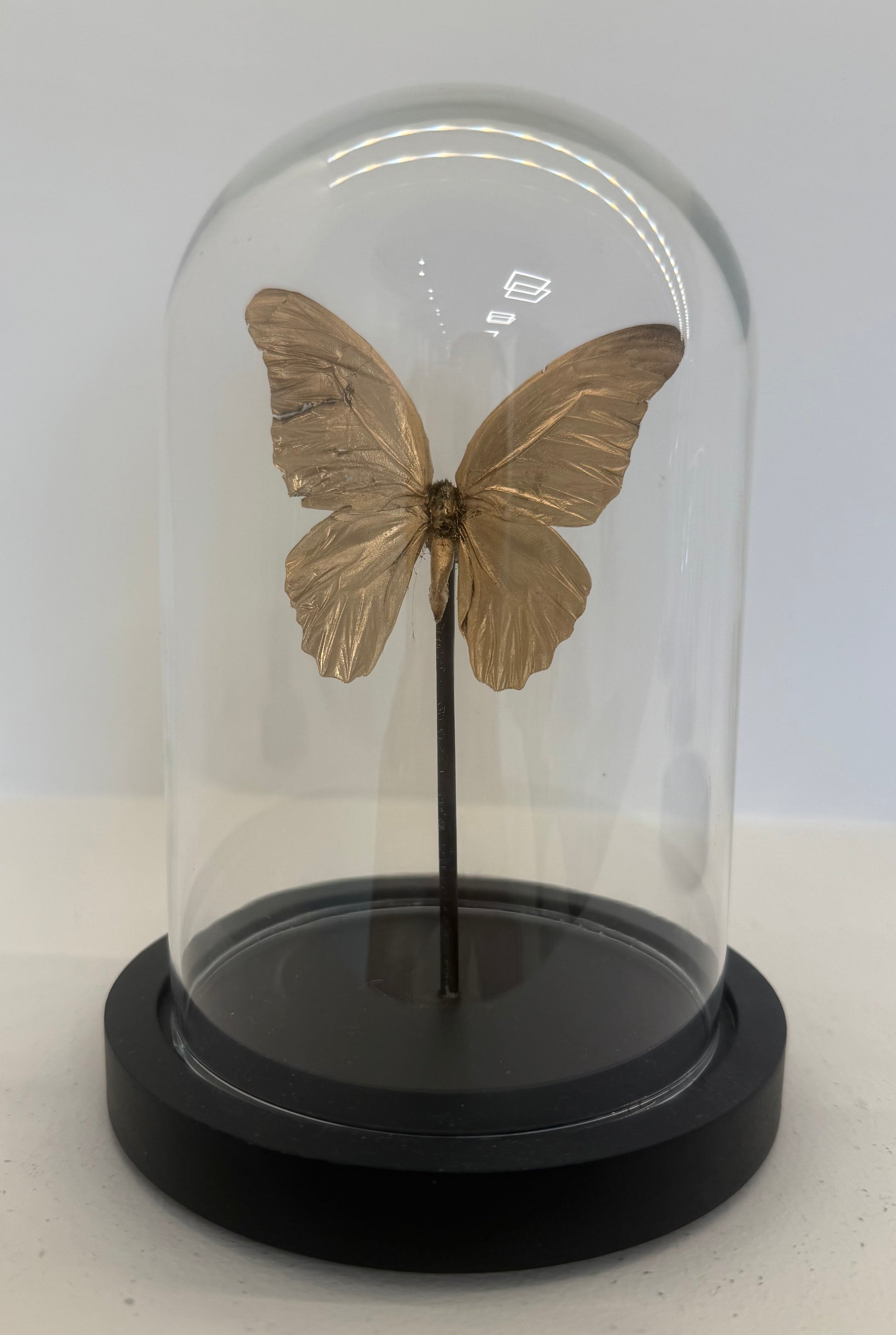 Gouden vlinder in glazen stolp