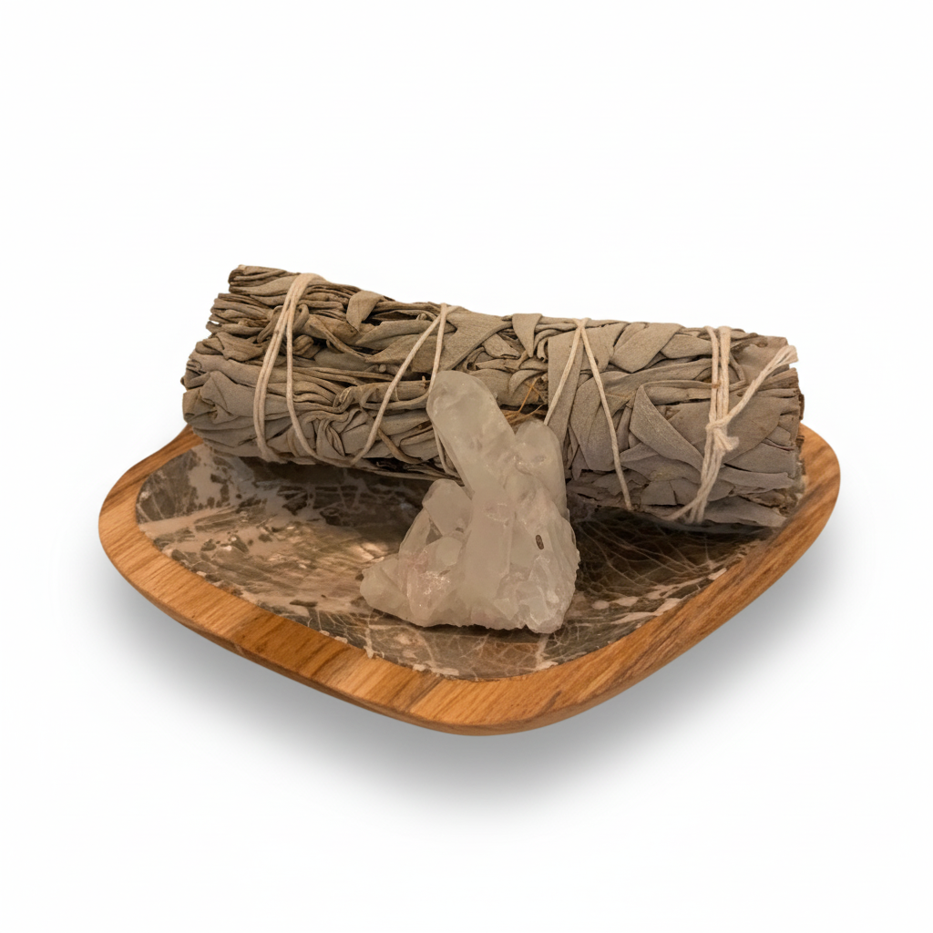 - Witte salie bundel: Traditioneel gebruikt om negatieve energie te reinigen en een zuivere omgeving te creëren.