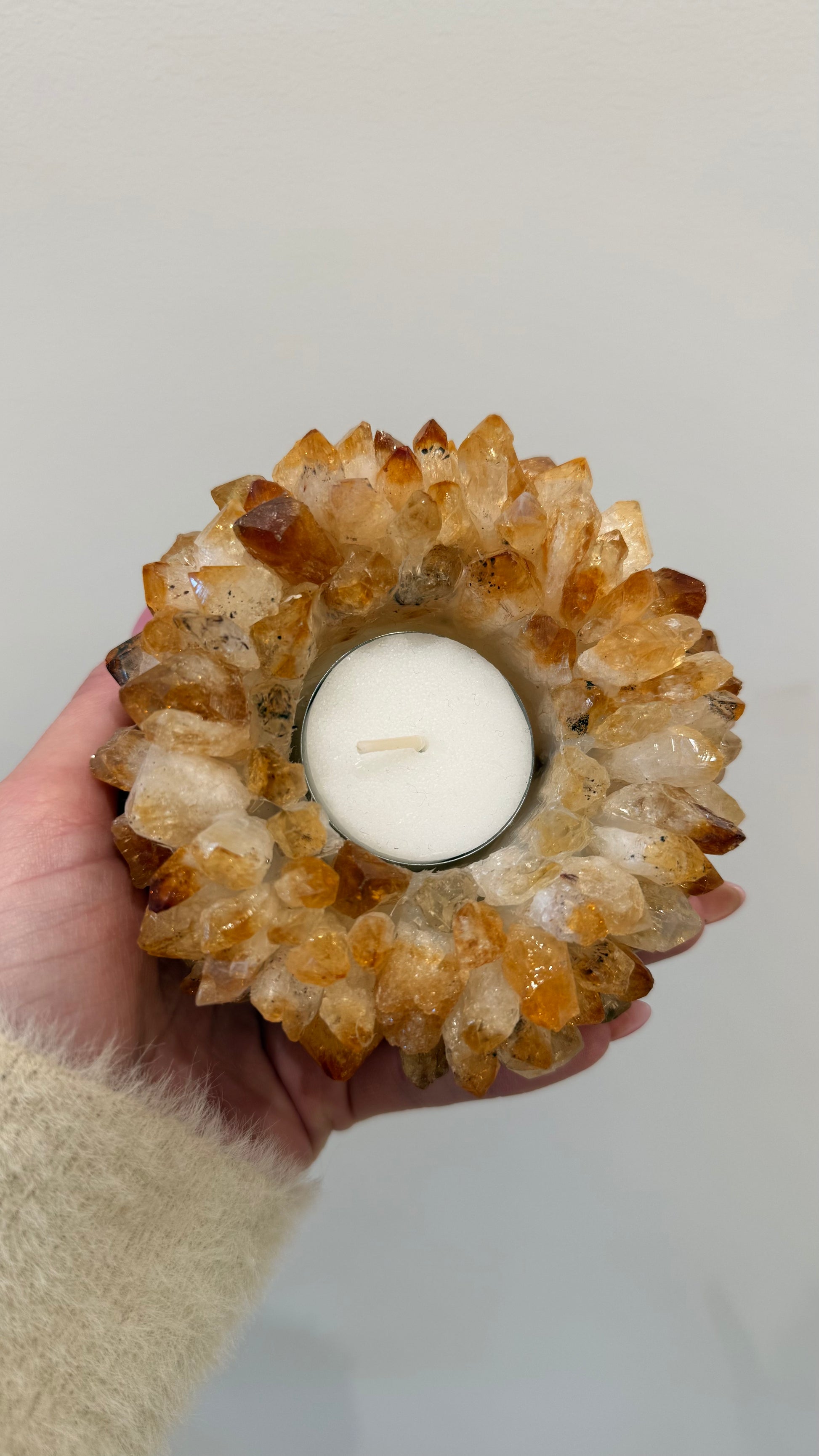 Waxinehouder gemaakt van pure citrien, kristallen van extra kwaliteit.